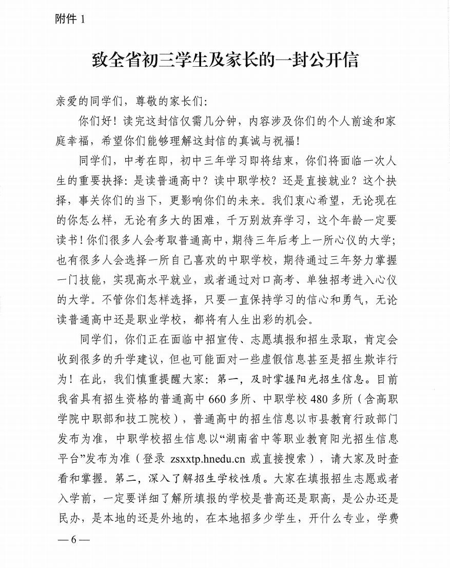 附件1:致全省应届初三学生及家长的一封公开信
