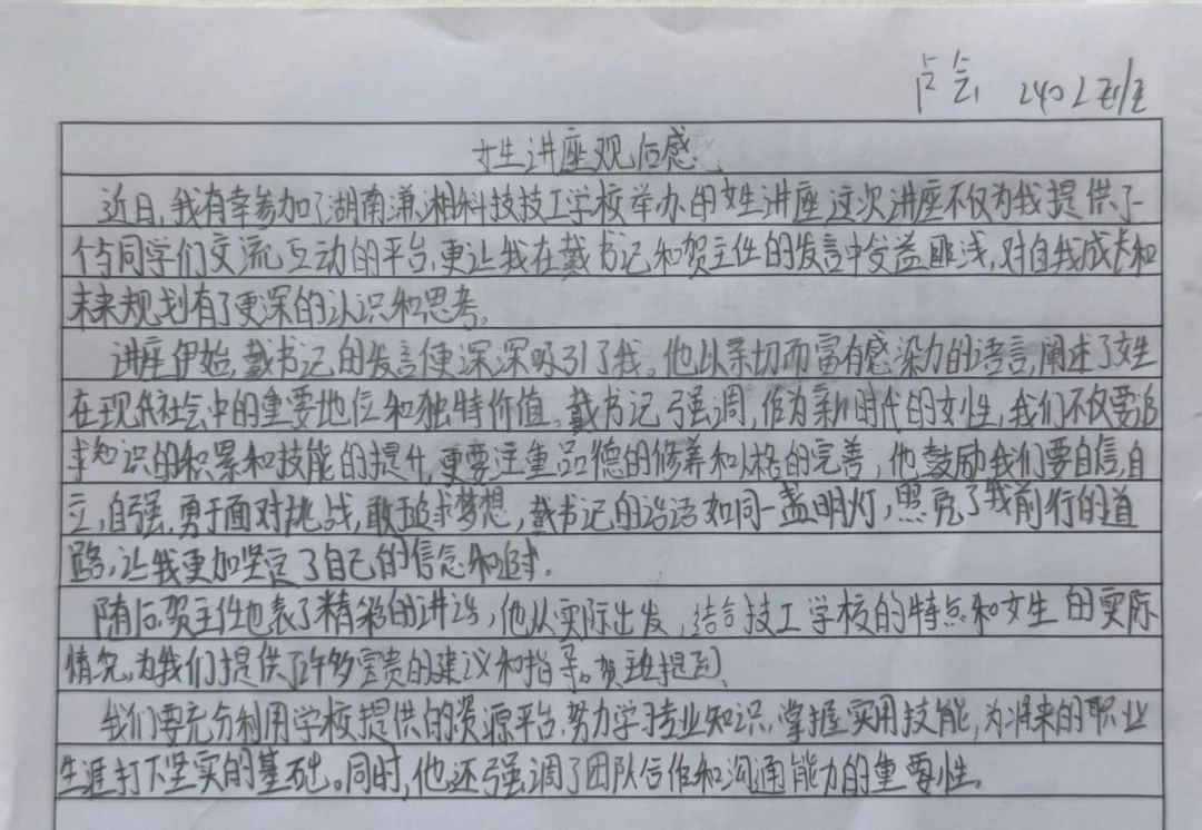 会后,服装专业的同学在心得中写道:“曾经觉得‘自爱’是老生常谈,今天才明白那是成长的铠甲。我们要像玫瑰一样绽放,也要学会用尖刺抵御风雨。”许多女生自发在班级群分享体会,掀起关于“女性力量”的热议。